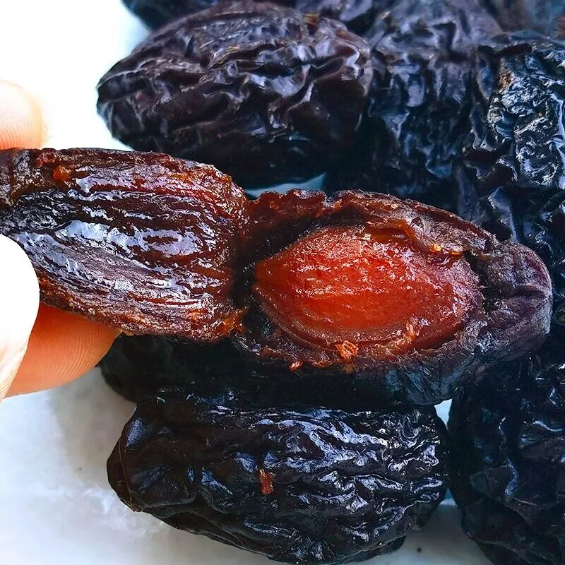 营养密度:西梅干膳食纤维含量达7-8g/100g,钾含量高达1058mg/100g,远超普通梅子干
