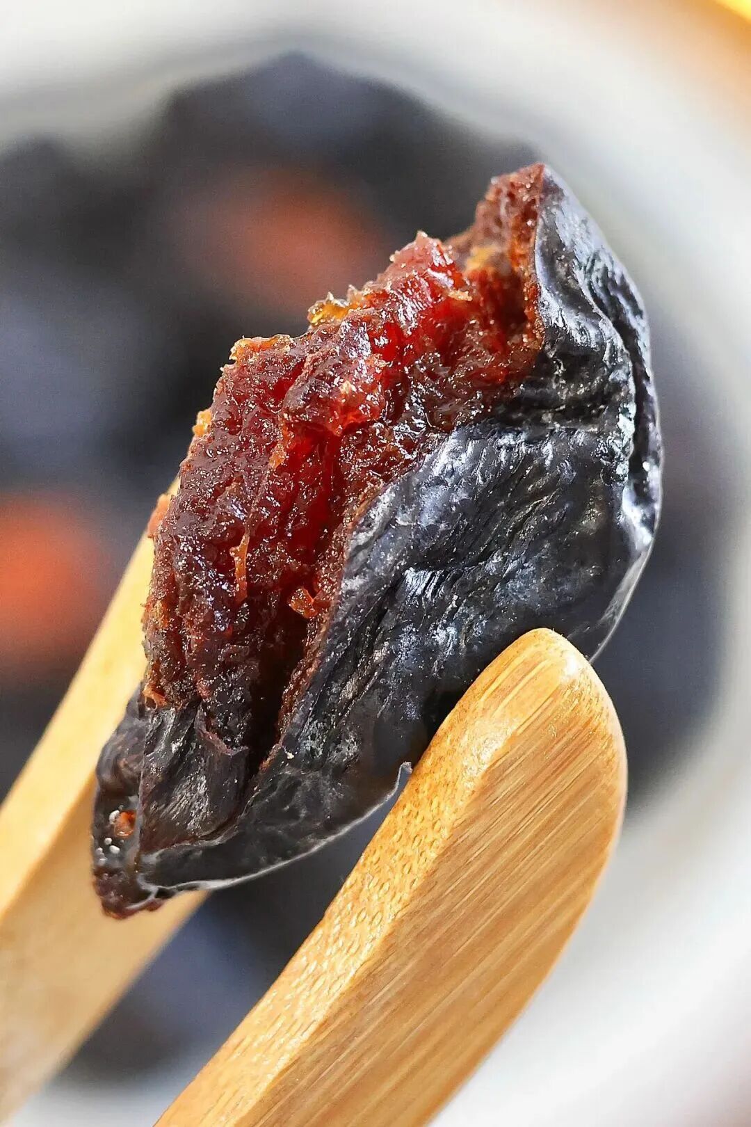 它来自欧洲李(Prunus domestica)这种李子的杂交品种,和中国传统的青梅、话梅完全不是一回事。如果你仔细观察新鲜西梅,会发现它更像是"拉长版的李子",成熟后果肉呈琥珀色,口感绵甜多汁,甚至可以吸着吃。