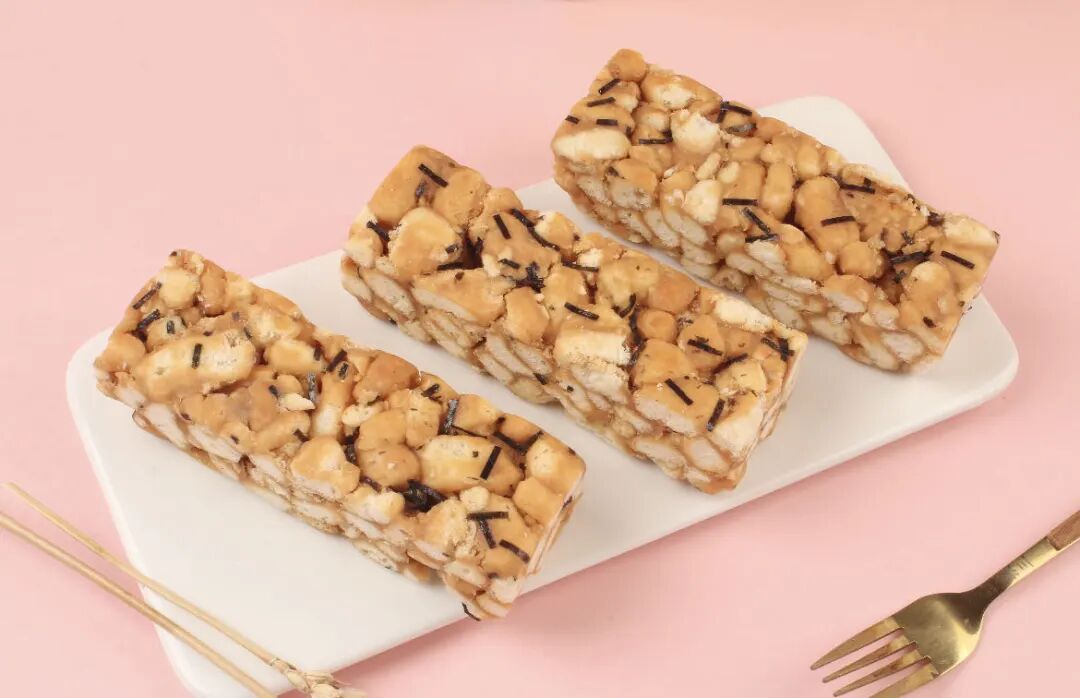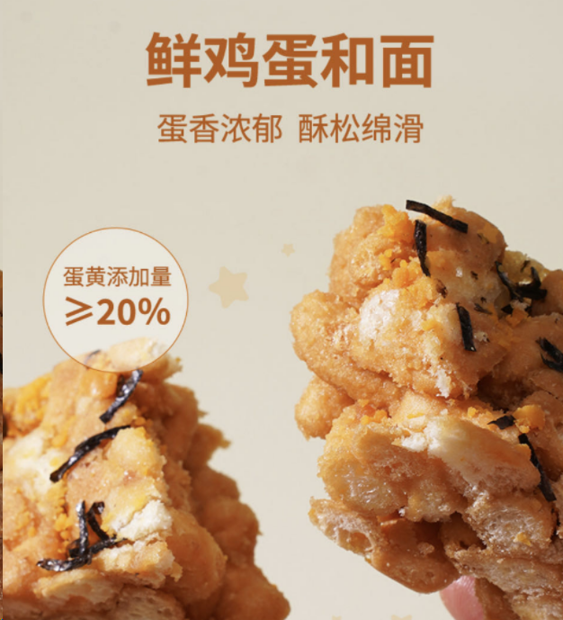 这款沙琪玛创新采用“中点西作”的方式,用制作蛋糕的原料和工艺来制作,期间更是严格把控油和代糖的添加,使得口感不甜、不油腻、不粘牙,入口即化,回口还能尝到蛋糕的香甜。