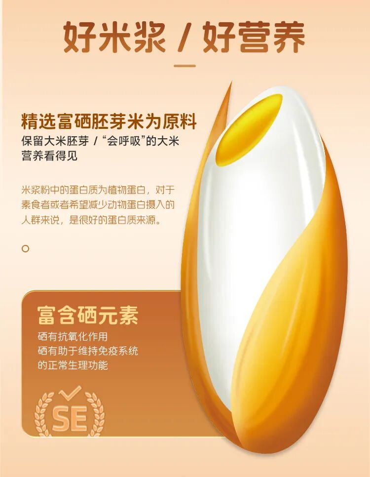 它精选优质产地的富硒胚芽米,保留了大米里营养丰富的胚芽;而且采用小分子结构,身体吸收起来毫无负担,早上冲一杯,很快就能补充能量,特别适合赶时间的上班族和上学的孩子。