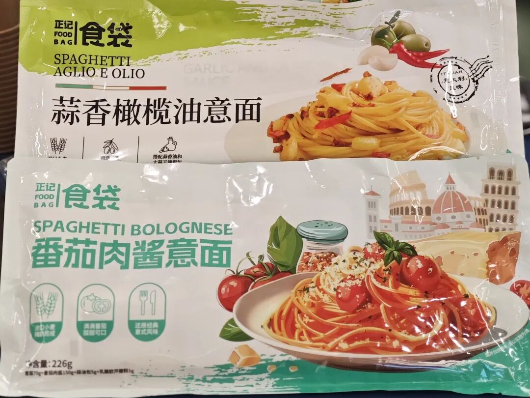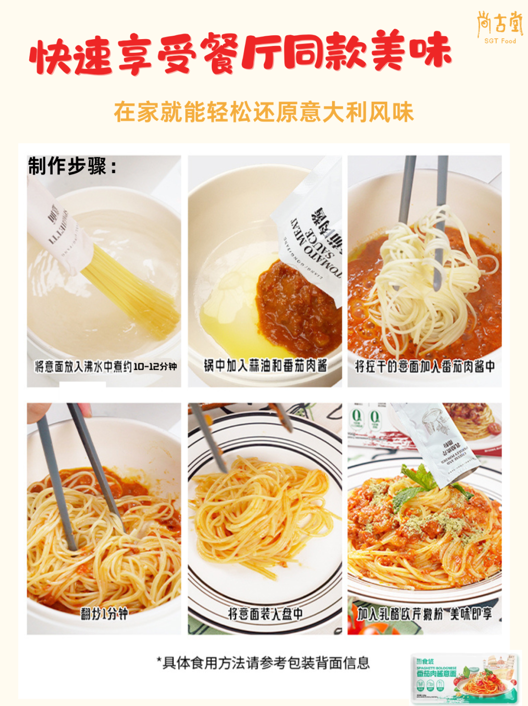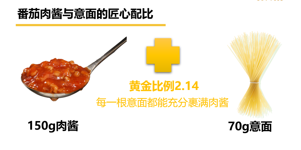而且配比特别贴心,70 克意面搭配 150 克肉酱,比例刚好让每一根面条都能裹满酱汁,不会出现酱吃完了剩面条的尴尬。泡发后的意面分量也够,成年人吃一餐刚好满足碳水需求,还能根据喜好加蔬菜、虾仁,营养更均衡。