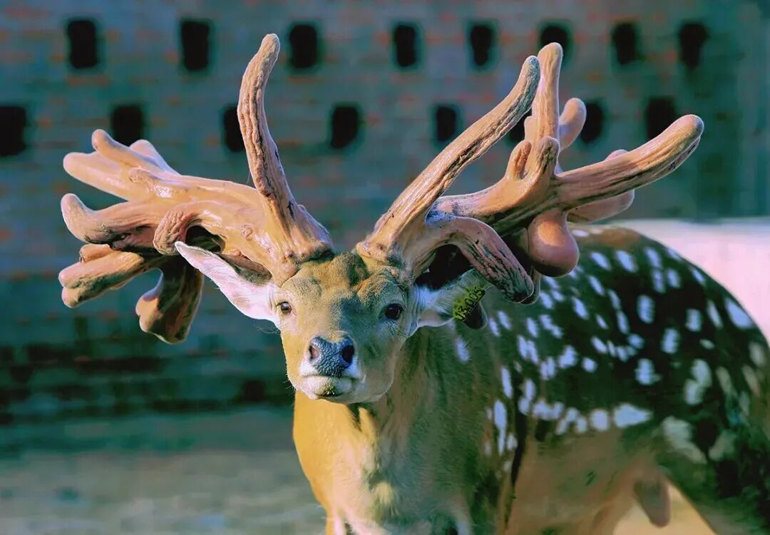 这种马鹿生活在中国新疆塔克拉玛干沙漠边缘。