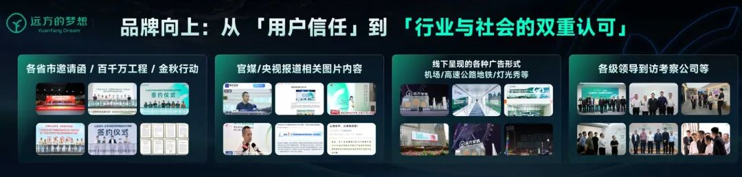各省市的邀请函,百千万工程,金秋行动,还有官媒/央视的一些报道,线下呈现的各种广告形式,以及各级领导的到访考察,都充分的说明远方好物的声量、品牌影响力,都已渗透到整个社会的方方面面。