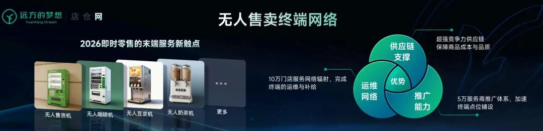 第三,未来的10万家门店,将成为百万无人终端 3公里内的天然运维点和补货站。最终实现 “线上种草、门店体验、即时触达” 的全场景、全时段品质生活覆盖。