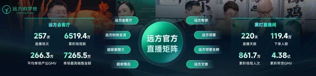 “远方会客厅”直播268场,单场最高销售额7265万元,创行业纪录。