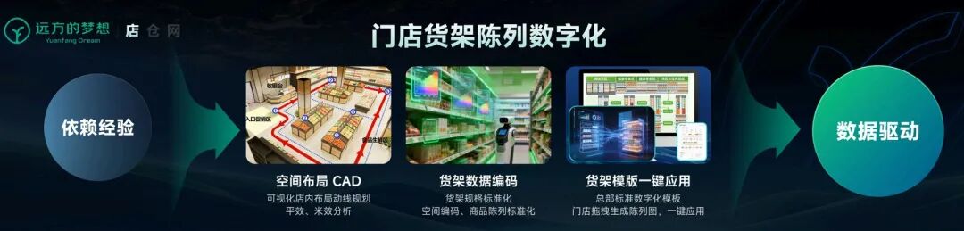 提供工具,将店铺空间、货架数字化,一键应用科学陈列模板,让门店告别经验主义,进入数据驱动时代。