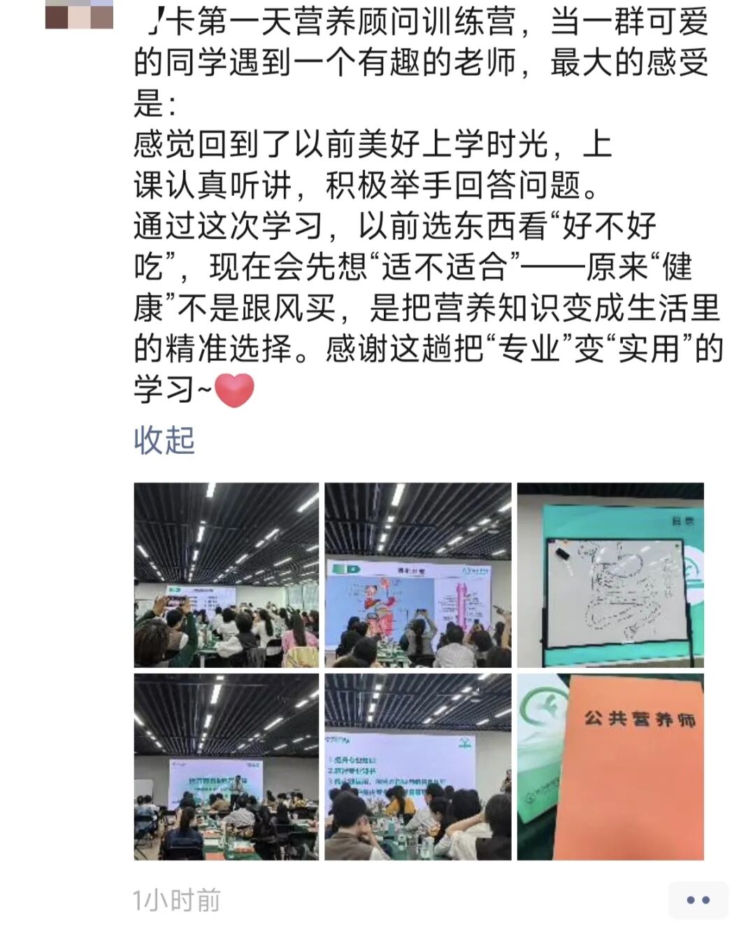 参加营养健康特训营,不只是一次培训,更是一段共同成长的旅程。我们始终相信:每一次投入的学习,都是一次自我跃迁的机会。