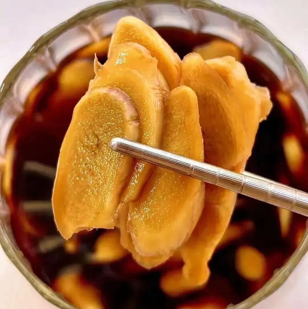 醋泡姜:嫩姜切片,放入玻璃罐中,倒入米醋没过姜片,可加少量冰糖。密封后冷藏3天即可食用。每天1-2片,适合脾胃虚寒者。