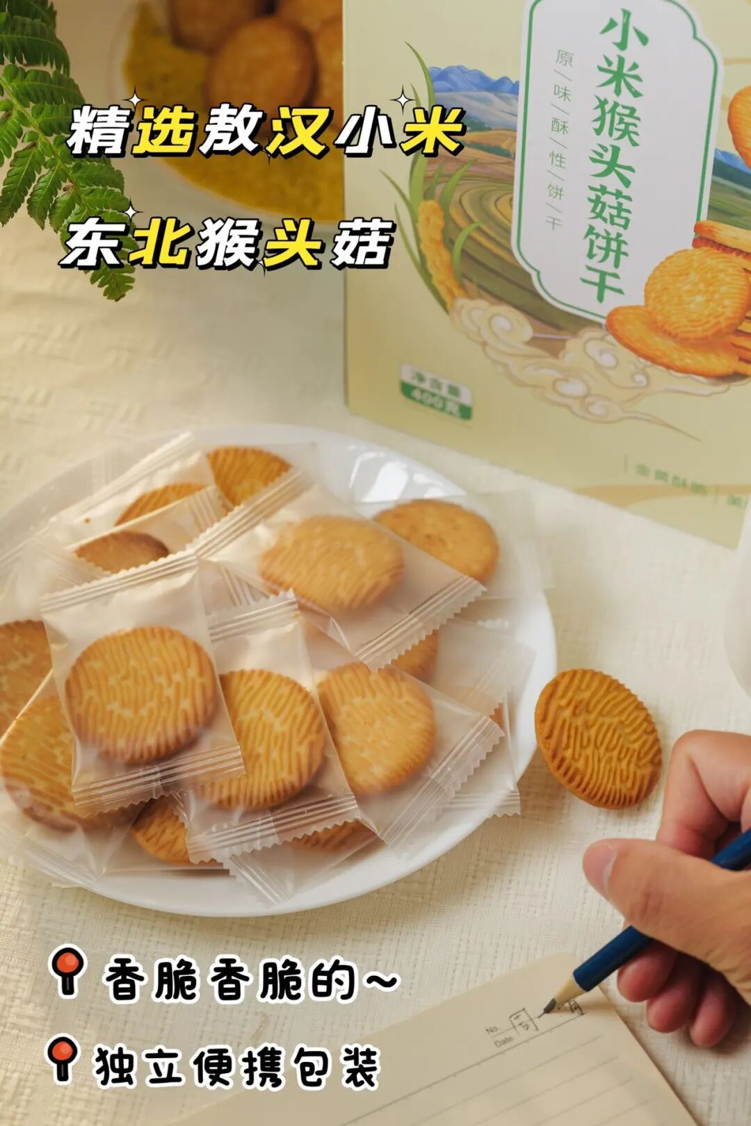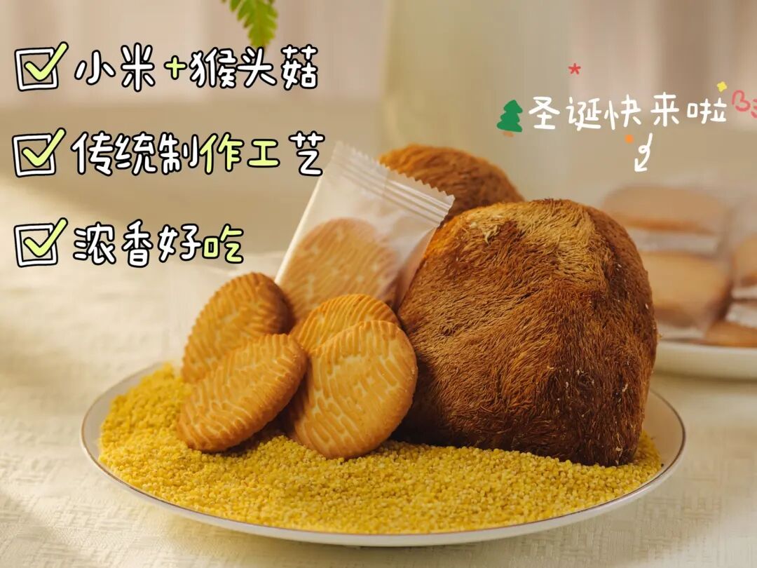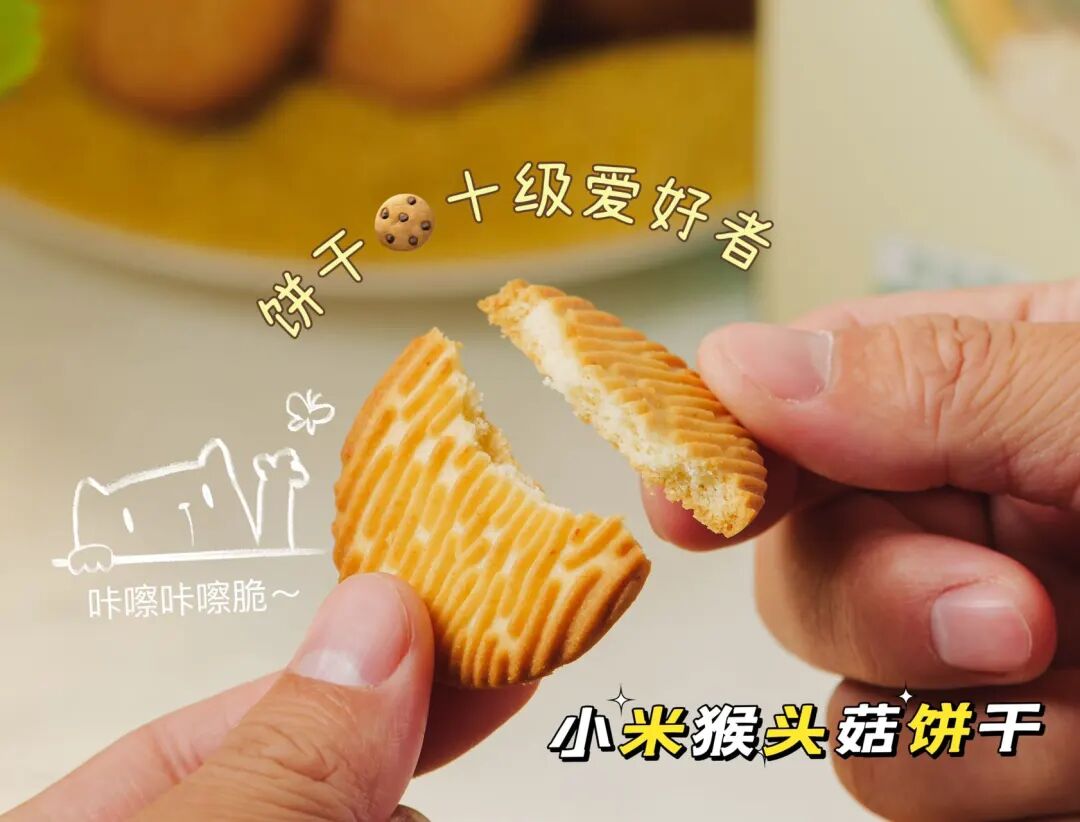 饼干的制作工艺同样考究。通过将小米磨成的粉与猴头菇粉按黄金比例混合,再经过精密的烘焙,最终成就了这款饼干独特的酥脆口感。