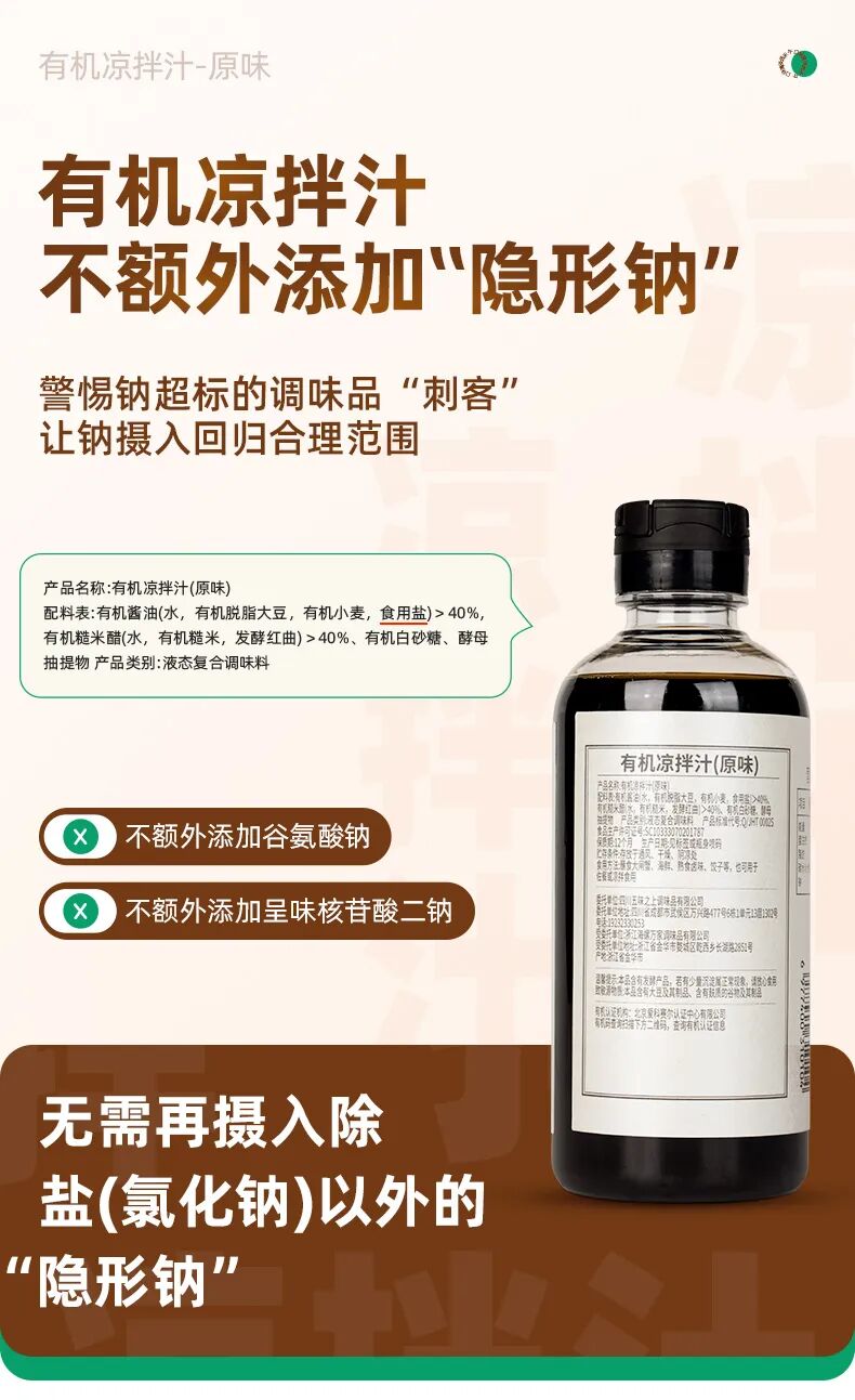 原味款配料表干干净净,有机酱油和有机糙米醋占比都超 40%,再加上有机白砂糖和酵母抽提物,酸甜咸鲜平衡得刚好,淋在焯水的秋葵、虾仁上,能让原本枯燥无味的食材,激发出更加鲜美的香。