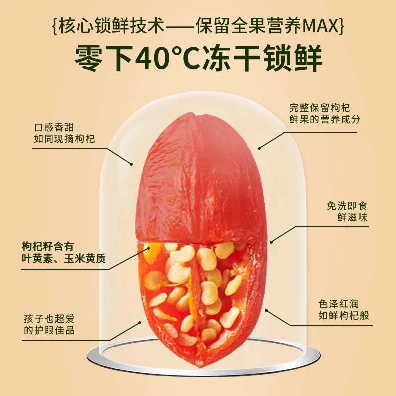 枸杞多糖(含量5%-8%)是其功效核心,兼具免疫调节、抗氧化等多重作用;还有类黄酮、β-胡萝卜素(9750微克)等抗氧化物质,能清除体内自由基。