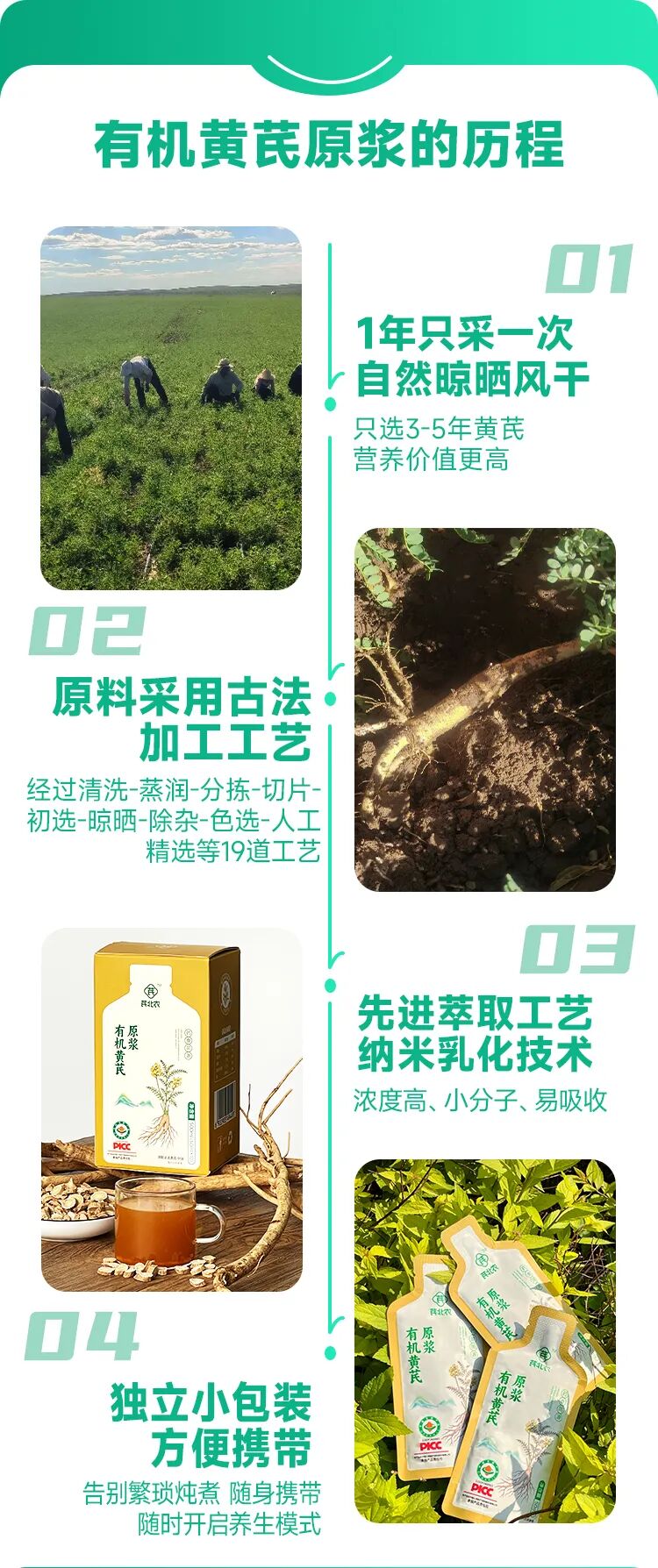 以芪北农有机黄芪原浆为例,其通过纳米乳化技术将黄芪有效成分转化为小分子结构,吸收率较传统泡水提升3-5倍,50ml原浆即相当于20克原生黄芪的精华。