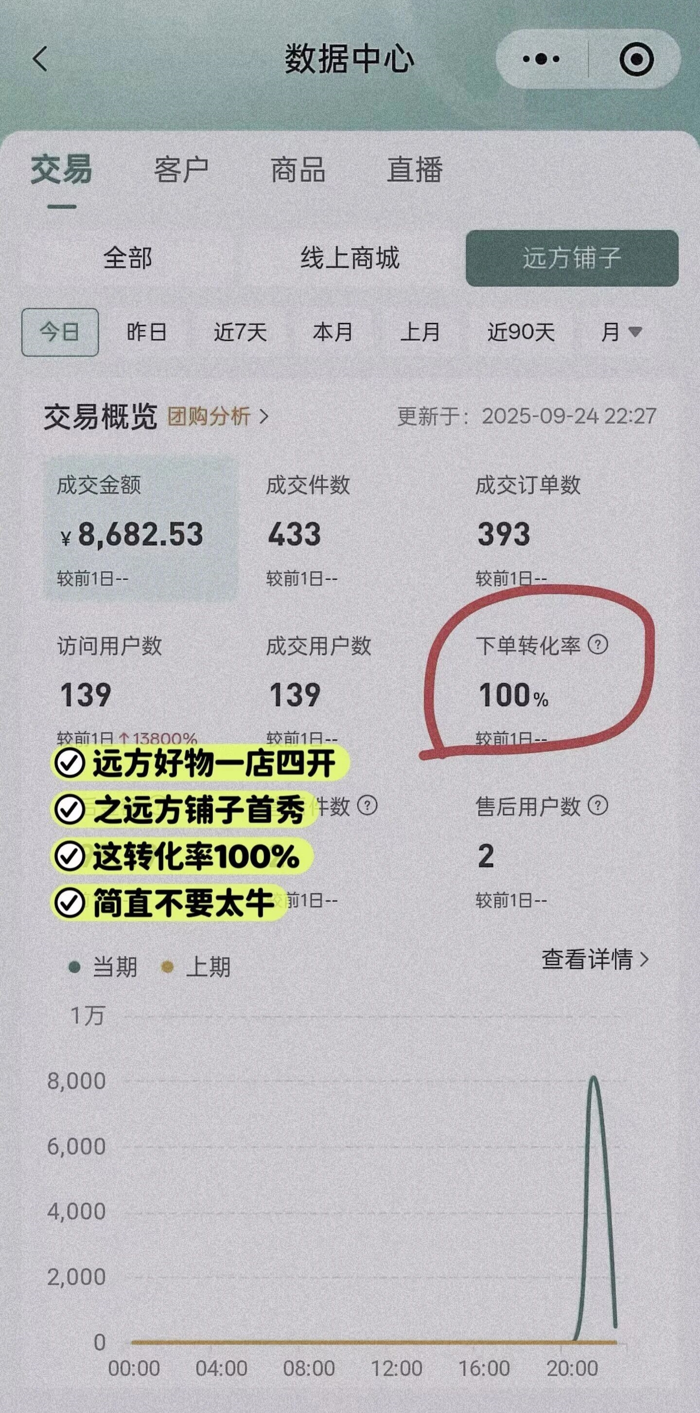 值得注意的是,我们特别关注到一家店铺——转化率竟然达到100%!