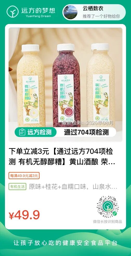若想尝试优质醪糟,远方好物安徽黄山有机无醇醪糟便是不错的选择。