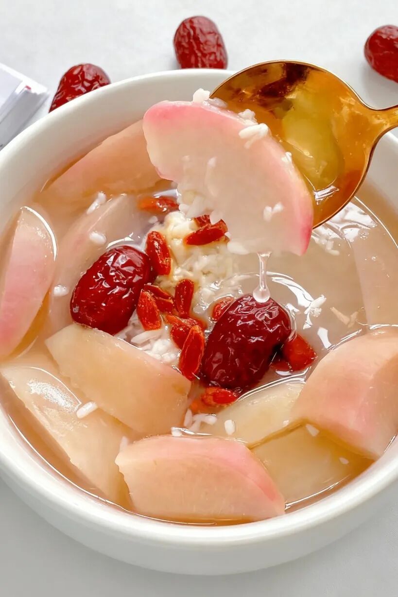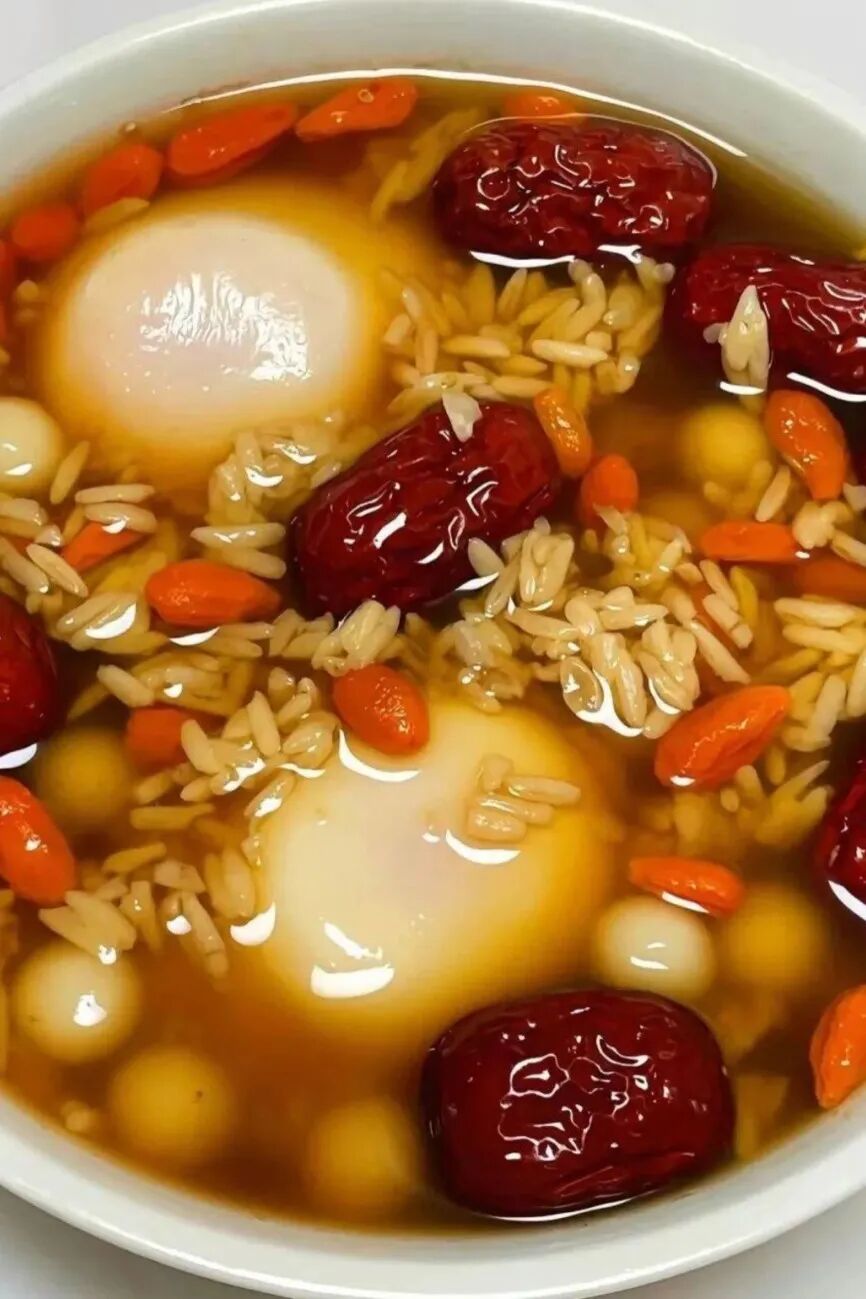 醪糟鸡蛋:锅中加水烧开,打入鸡蛋煮成荷包蛋或蛋花,再加入醪糟、红枣、枸杞,滋补又暖胃,是产妇和女性的滋补佳品。