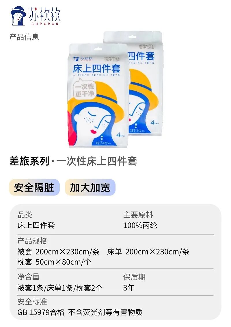 (一次性浴巾&床上四件套均在左一图片链接)