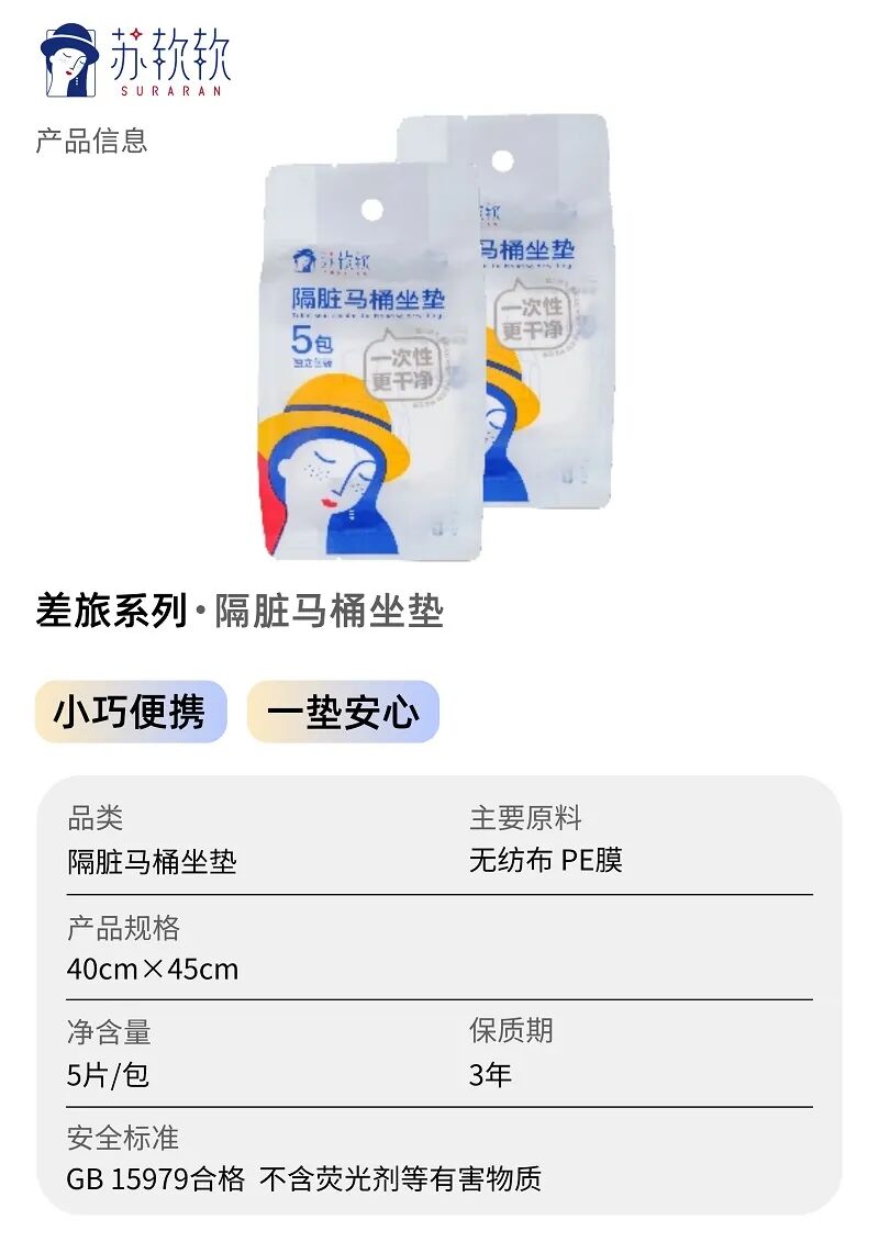 酒店的卫生间总像藏着很多故事,谁知道上一个用马桶的是膘肥体壮的大汉,还是热情似火的姐姐?一次性马桶垫能让所有纠葛在此打住,避免和陌生人的“亲密接触”,防止通过马桶传播的风险 —— 物理屏障才是最好的屏障!它是独立包装,还做了加大设计,撕取方便,直接贴在马桶圈上,就能有效隔绝看不见的细菌,用公共马桶也能安心又轻松。