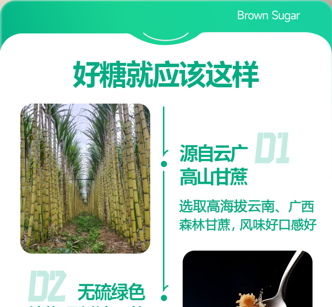 原料与工艺革新:选用云南广西高山有机甘蔗,采用无硫绿色制糖技术和“瞬时降膜蒸发浓缩技术”,将糖浆熬制时间从传统130-140℃长时间熬煮缩短至45秒,最大程度保留甘蔗多酚等活性物质,同时去除有害物质。