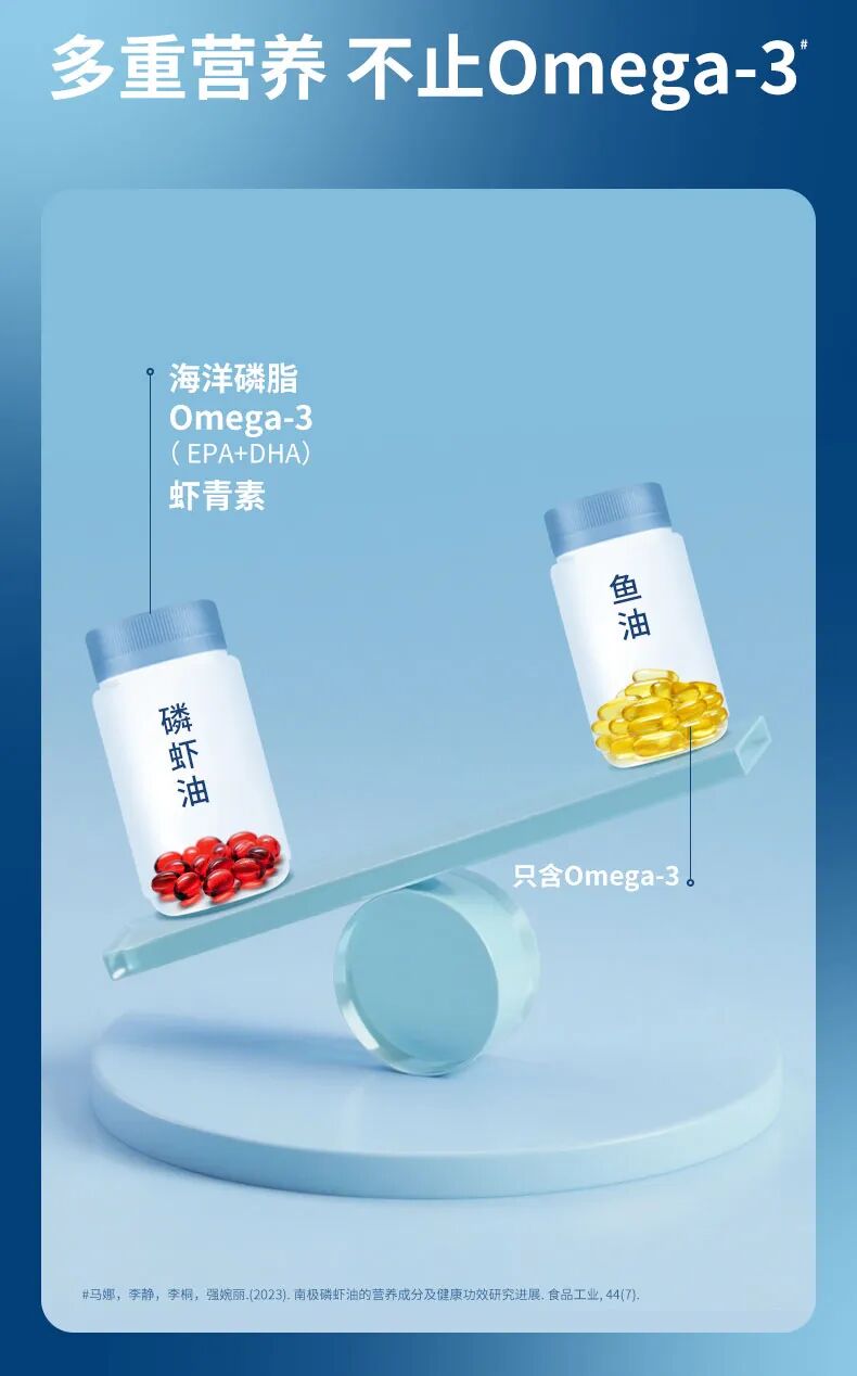 作为从南极磷虾中提炼的透明油状液体,它蕴含磷脂、DHA、EPA、虾青素等,是新型海洋Omega-3来源。