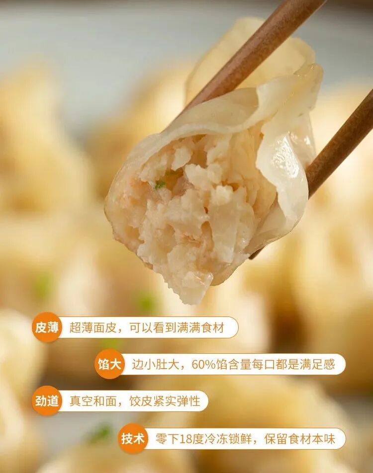 这款鲅鱼水饺选用山东石岛渔港2-4斤的鲜活鲅鱼,肉质细嫩无小刺。以秘制汤料作为馅料基底,再融入了牡蛎汁,以替代传统猪肥膘,既保留了水饺的鲜嫩多汁,又巧妙避开了猪肉的腥味,美味而不失层次。