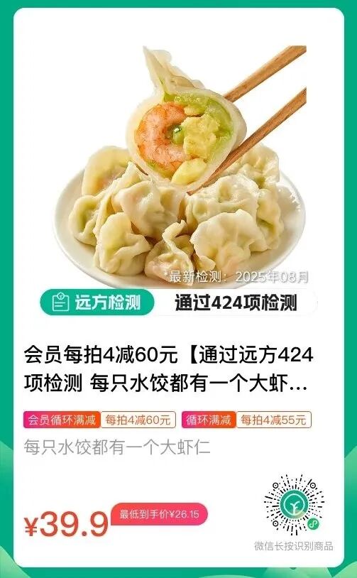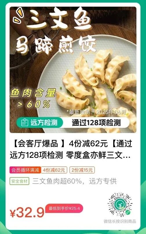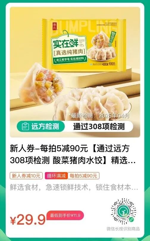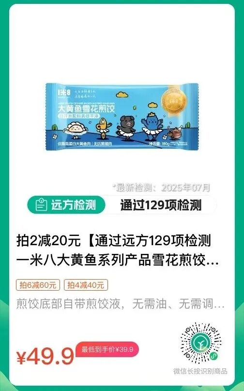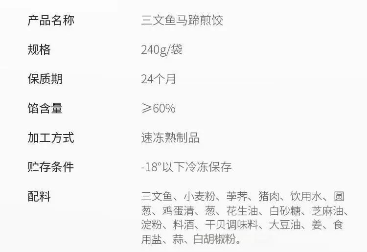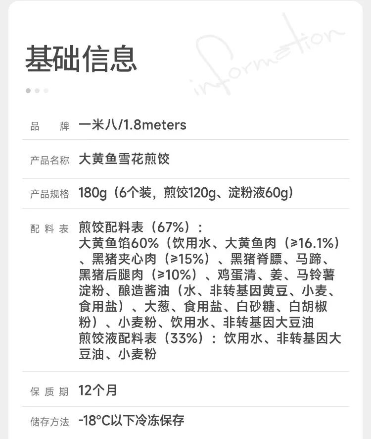 这款煎饺用的是无抗养殖大黄鱼和无抗黑猪肉,肉质细嫩无腥,肥瘦比例适中,且钠含量仅175mg/100g,比普通煎饺低近30%,吃起来脆底酥、馅料鲜,没有油腻感。