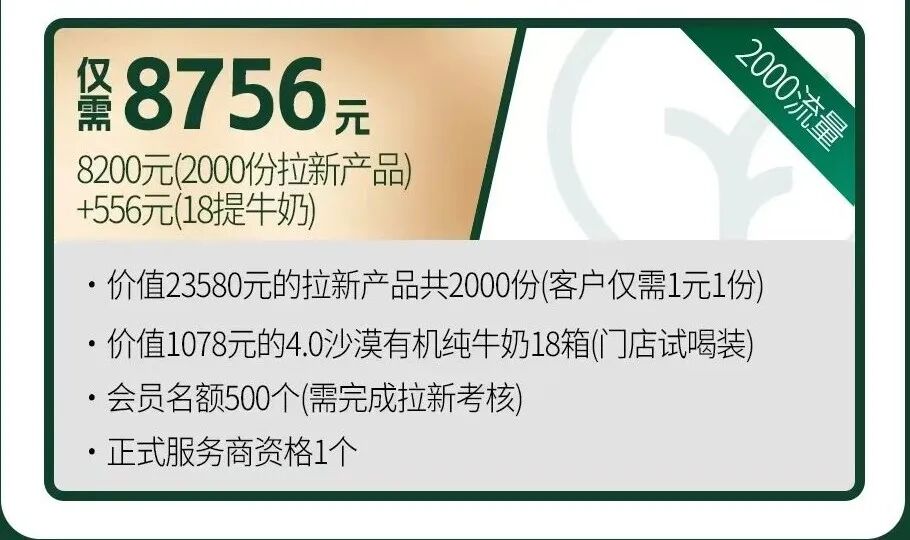 条件:购买“8200+556元开业大礼包”+拉新1000人以上