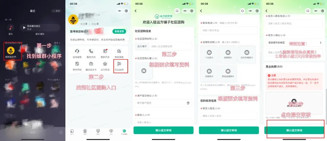 登录蜂群服务商小程序---个人中心---社区团购,提交资料申请入驻;