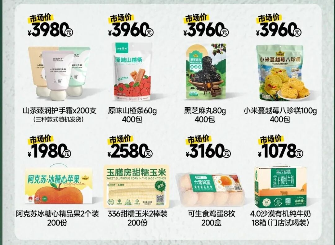 主推产品:远方安选沙漠有机奶、40枚装鸡蛋、9.9元包邮早餐集市等